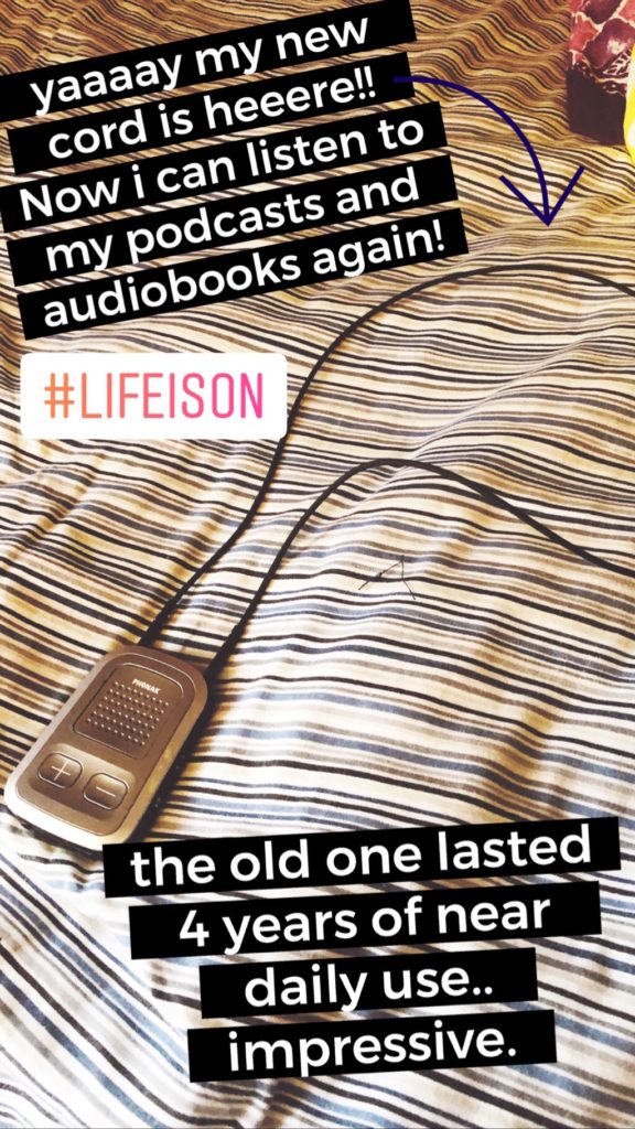 I finished two books yesterday. I will tell you that trying to read with racing thoughts does not work. It almost felt as if I was illiterate. I could SEE the words, but my brain was moving so fast that I couldn’t process them. I can hear you asking why did you not just listen to audiobooks? Well, the cord on my Bluetooth thingie broke. It broke on the INSIDE, so it took my mom and me a week and a half of googling to come across an article that mentioned that it breaks on the inside, so you have to replace it. I was mad, but mom told me it made sense even the earphone thingies from Apple breaks the same way. Luckily the cord for my Bluetooth thingie was on Amazon for 20 dollars. Yeah, I thought it was a ridiculous amount for a cord but what could I do? So I ordered it, and when it came I said a prayer to the CI Implant God that this works and it did!! So Yay! Now I can listen to my podcasts and audiobooks again!